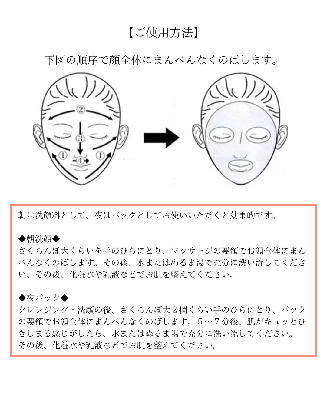 朝は洗顔料として、夜はパックとしてお使いいただくと効果的です。