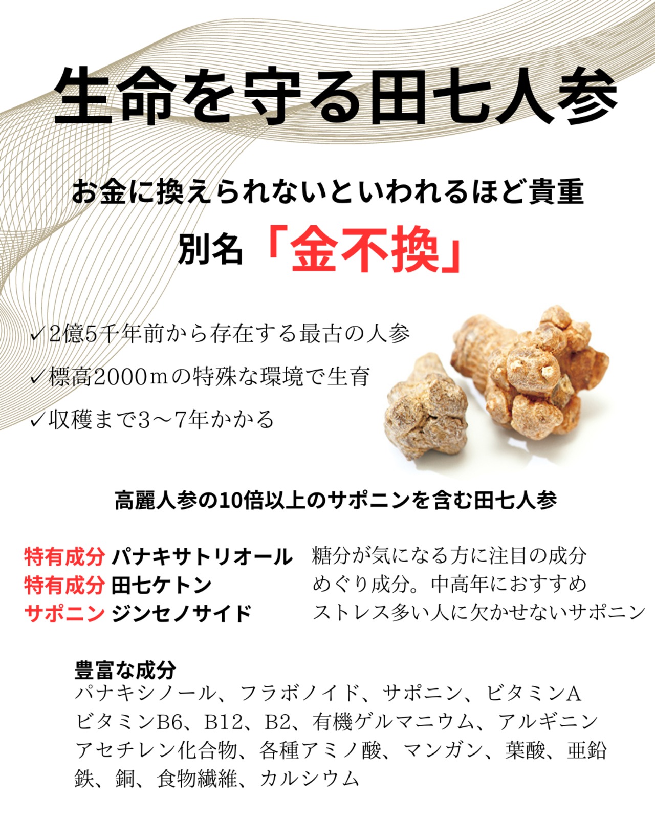 驚異的な生命力をもつ「田七人参」100%のパワーで、エネルギッシュな毎日に。
